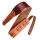 This guitar strap crafted from brown and tan leather, exuding a rustic and classic aesthetic. The strap features a padded shoulder section, designed for comfort during extended use, which is essential for guitarists. The adjustable end of the strap is equipped with multiple holes, enabling the player to customize the length to their preference, ensuring a perfect fit and playing position. This design detail adds to the strap's versatility, catering to various body sizes and playing styles. The combination of colors and the quality of the leather suggest durability and a premium feel, making it a stylish and functional accessory for any guitarist.