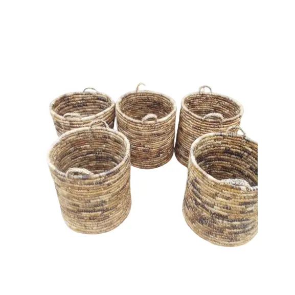These eco-friendly storage baskets are handwoven from natural banana leaves (ibirere), blending durability with traditional Rwandan craftsmanship. Ideal for organizing household items, storing laundry, or decorating your space, each basket comes with built-in handles for easy carrying. Their earthy tones and sturdy design make them both functional and beautiful.
