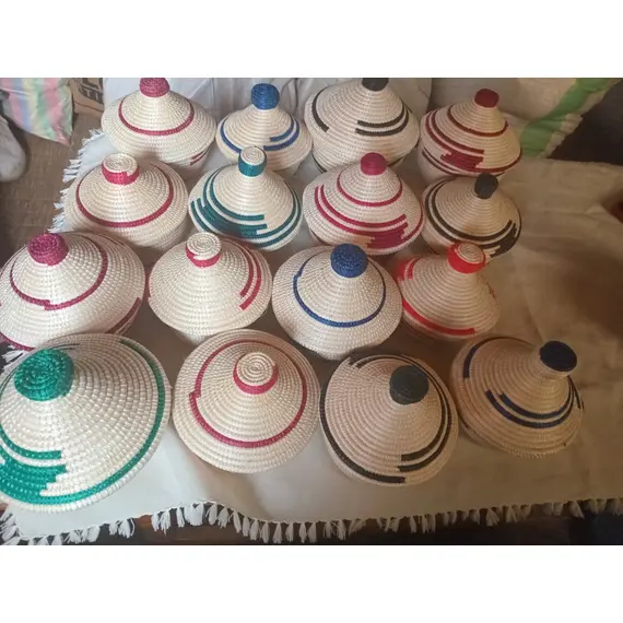 Set of 2 medium-sized handwoven baskets, perfect for storage or serving. Durable, colorful, and affordable at 3,000 Frw per pair (≈ $2.40 USD). Ideal for everyday use and decoration.