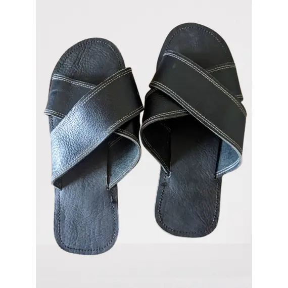 Women's Two-Strap Genuine Leather Flat Sandals – Handcrafted Fashion Slides
