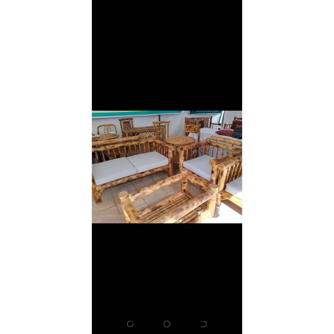 Bamboo Wooden Modern Chair with Pillow – Upholstered Lounge Armchair with Solid Wood Frame & Soft Cushion | Low Back Design for Living Room, Bedroom, or Balcony