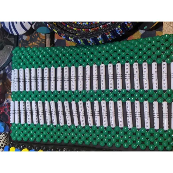 Stylish and chic, the MUNYANA Green & White Acrylic Beaded Clutch is perfect for parties, weddings, and casual outings. Featuring a bead string design, it offers both elegance and practicality.